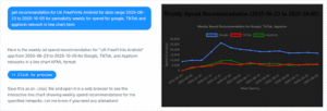 • Get recommendation for UK FreePrints Android for date range 2025-06-23 to 2025-10-05 for periodicity weekly for spend for Google, TikTok and Applovin network in line chart html.