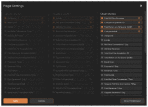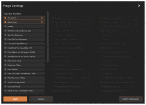 When a metric is displayed in white, this indicates a metric that is not advised by AIM (i.e., Ad Spend).
