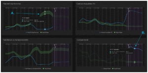 The Chart Metrics section provides the ability to select four metrics to display in an interactive chart form. The charts display AIM’s predictive models for any metric or KPI selected.