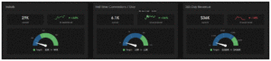 Each metric that is displayed as a headline will show the metric title, the current (spend or metric percentage), the trend and a gauge illustrating the target and where the current standing is compared to that target.