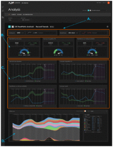 The AIM app analysis page provides flexibility within each of the page sections to display the metrics that are most relevant to you.