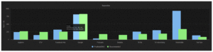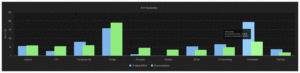 If the green bar is higher than the blue bar, the channel should receive more budget than BAU predicts. If the blue bar is higher than the green bar, the channel should receive less budget than BAU predicts.